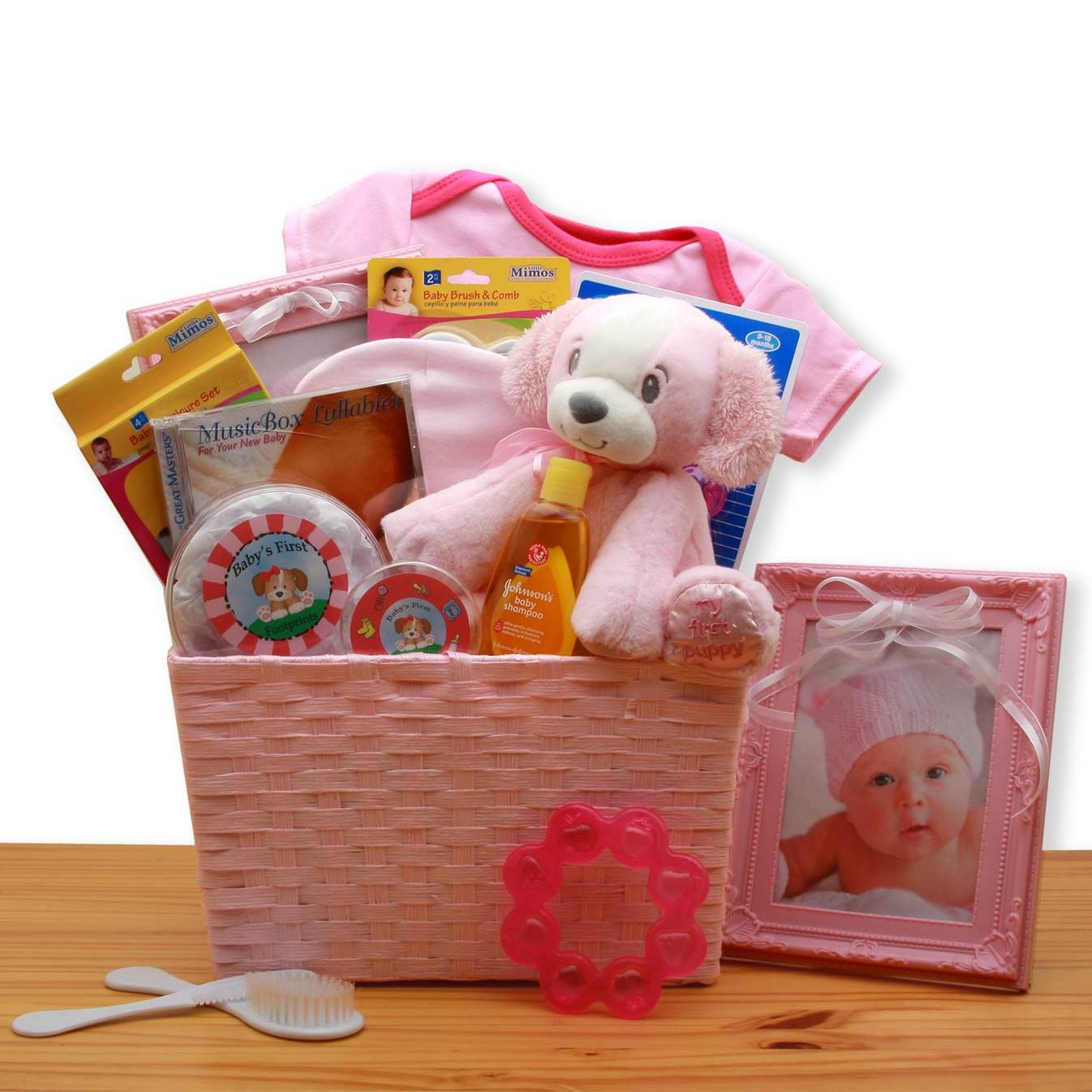 Puppy Love New Baby Girl Gift Basket – Pink